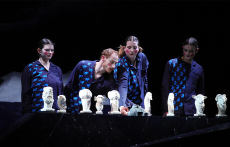 In einem Reigen aus skurrilen Nummern mit Fundstücken, Papiertheater-Sets, Live-Kameras und Nasenflöte entfaltet sich die Lebensgeschichte eines berühmten indischen Panzernashorns. „Jungfer Clara“ genannt, tourte es über Jahrmärkte und Königshöfe und fand als Wundertier auch Einzug in die Enzyklopädie.